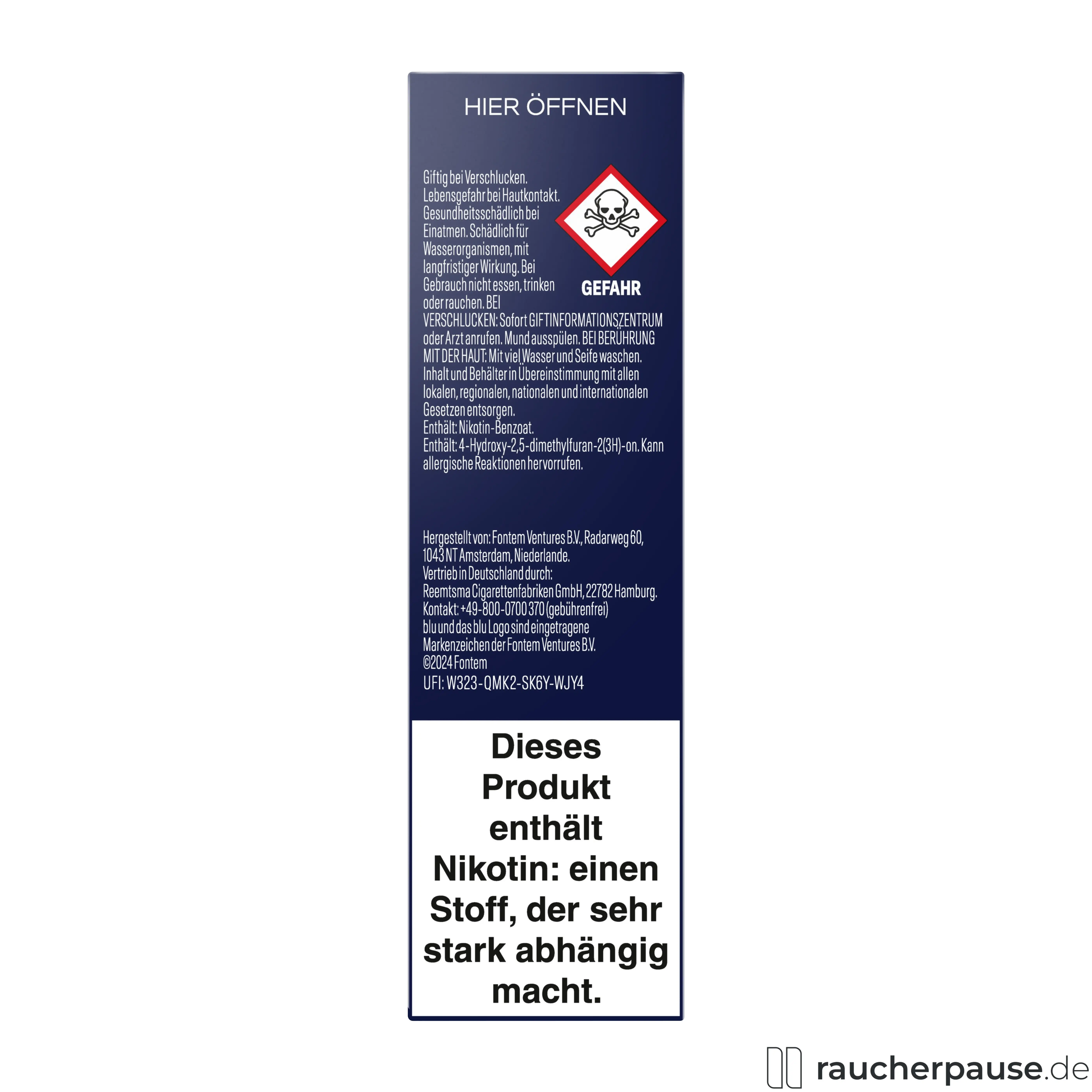 Hersteller: Fontem Ventures B.V., Radarweg 60, 1043 NT Amsterdam, Niederlande