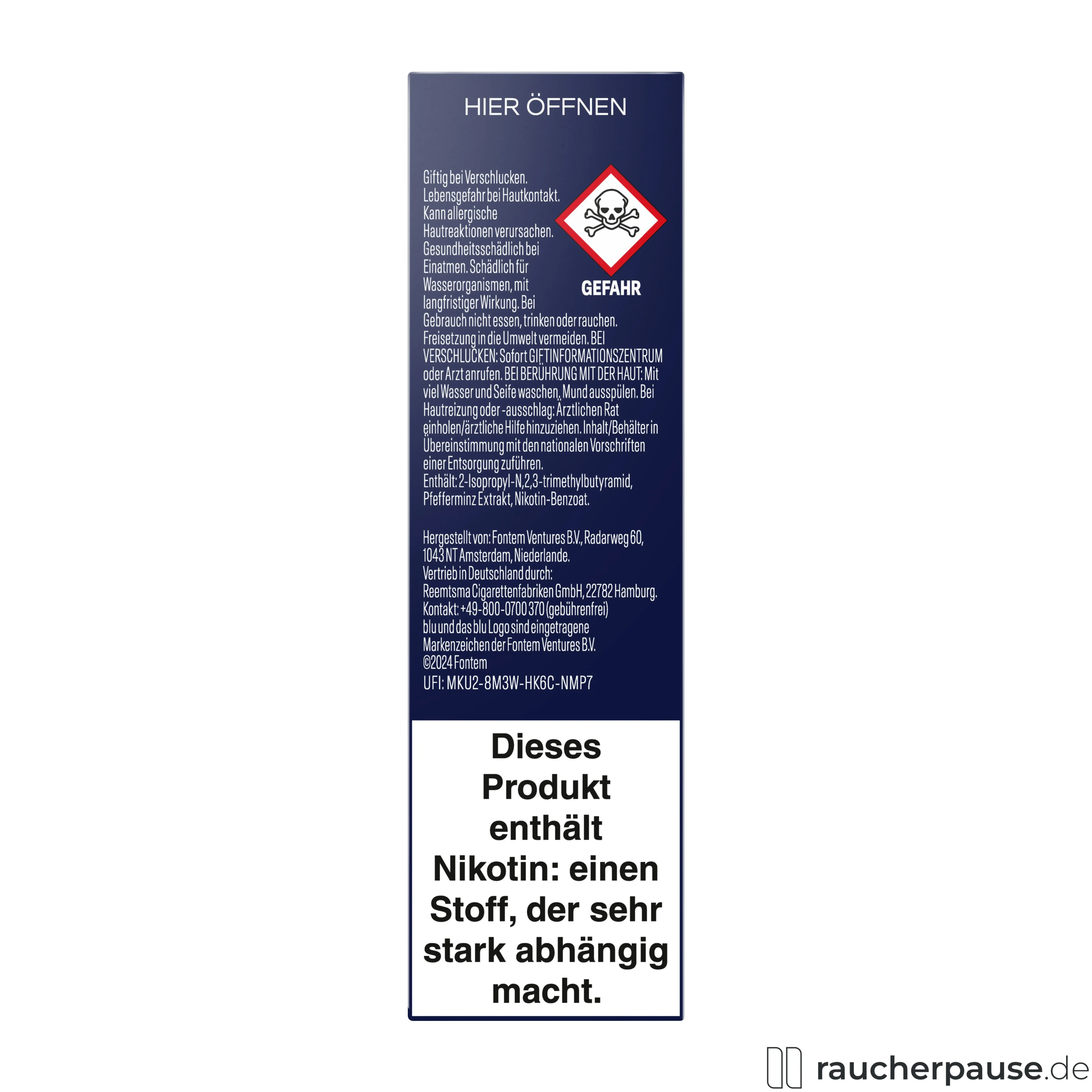 Hersteller: Fontem Ventures B.V., Radarweg 60, 1043 NT Amsterdam, Niederlande