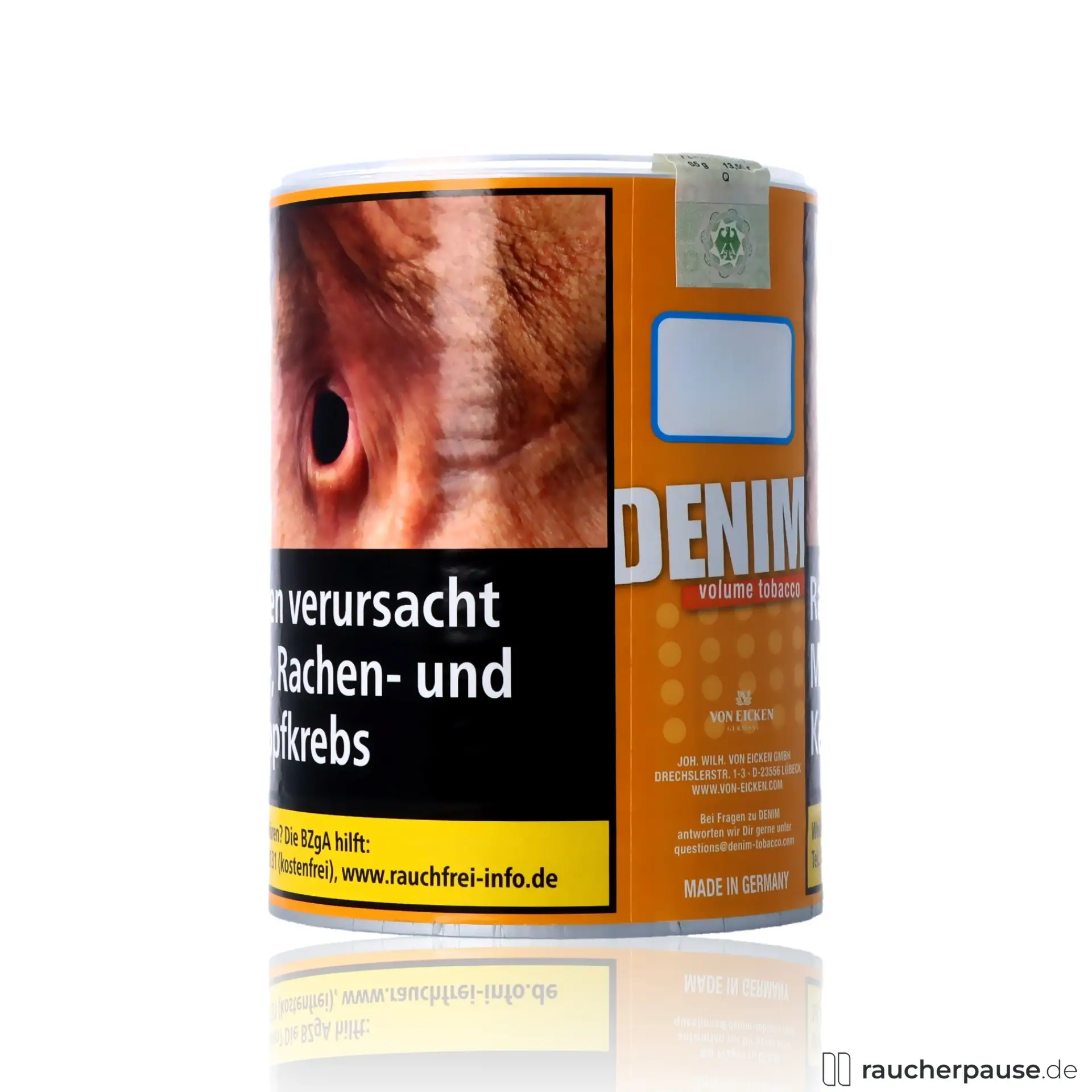 Der Denim Volumentabak steht für Qualität und Tradition. Hergestellt von Johann Wilhelm von Eicken, einem renommierten Tabakproduzenten, garantiert dieser Tabak ein gleichbleibend hohes Qualitätsniveau. Die sorgfältige Verarbeitung der American Blend Mischung erfüllt höchste Standards und bietet ein unverwechselbares Aroma.