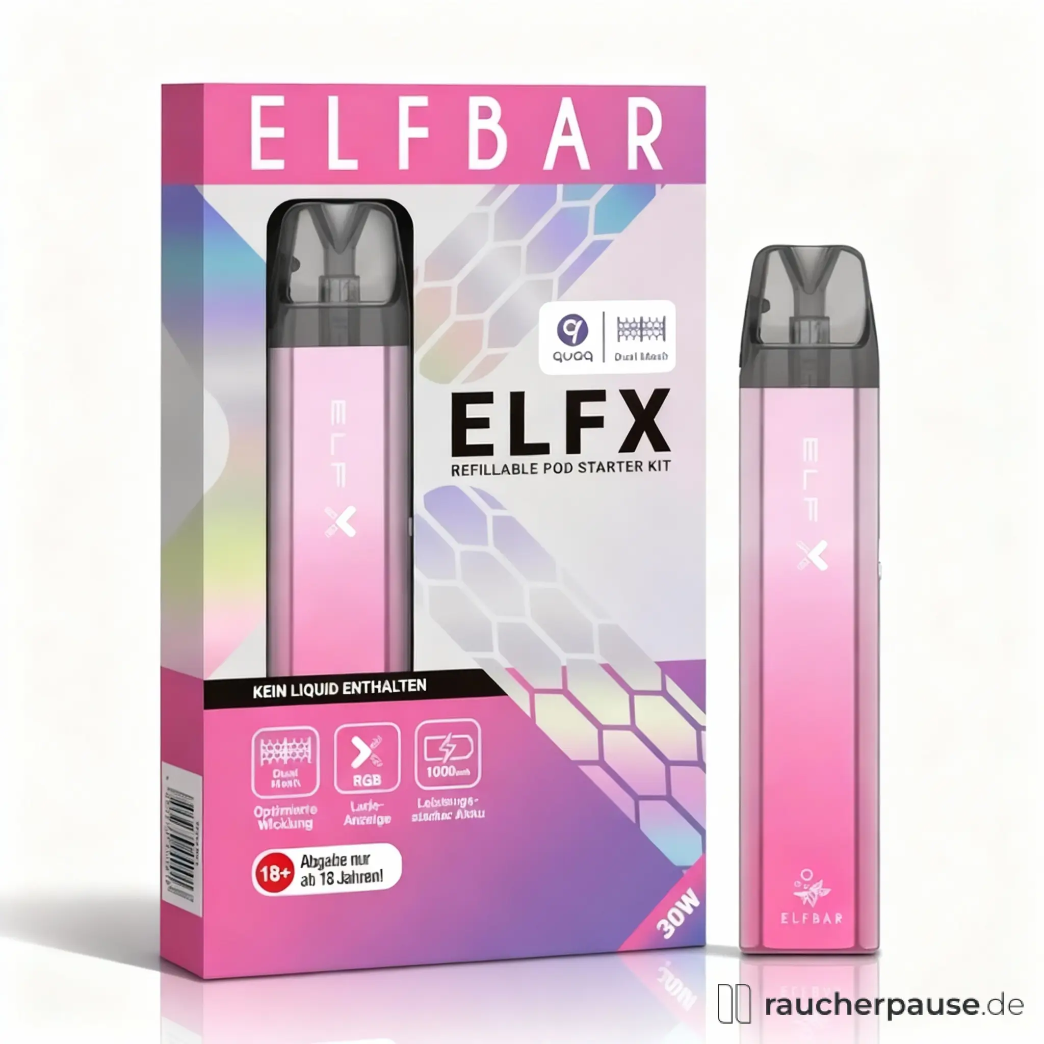 Erleben Sie das innovative Design und die fortschrittliche Technologie des ELFBAR ELFX E-Zigarette Sets in Silber-Pink. Perfekt für alle, die Wert auf Qualität und Stil legen.