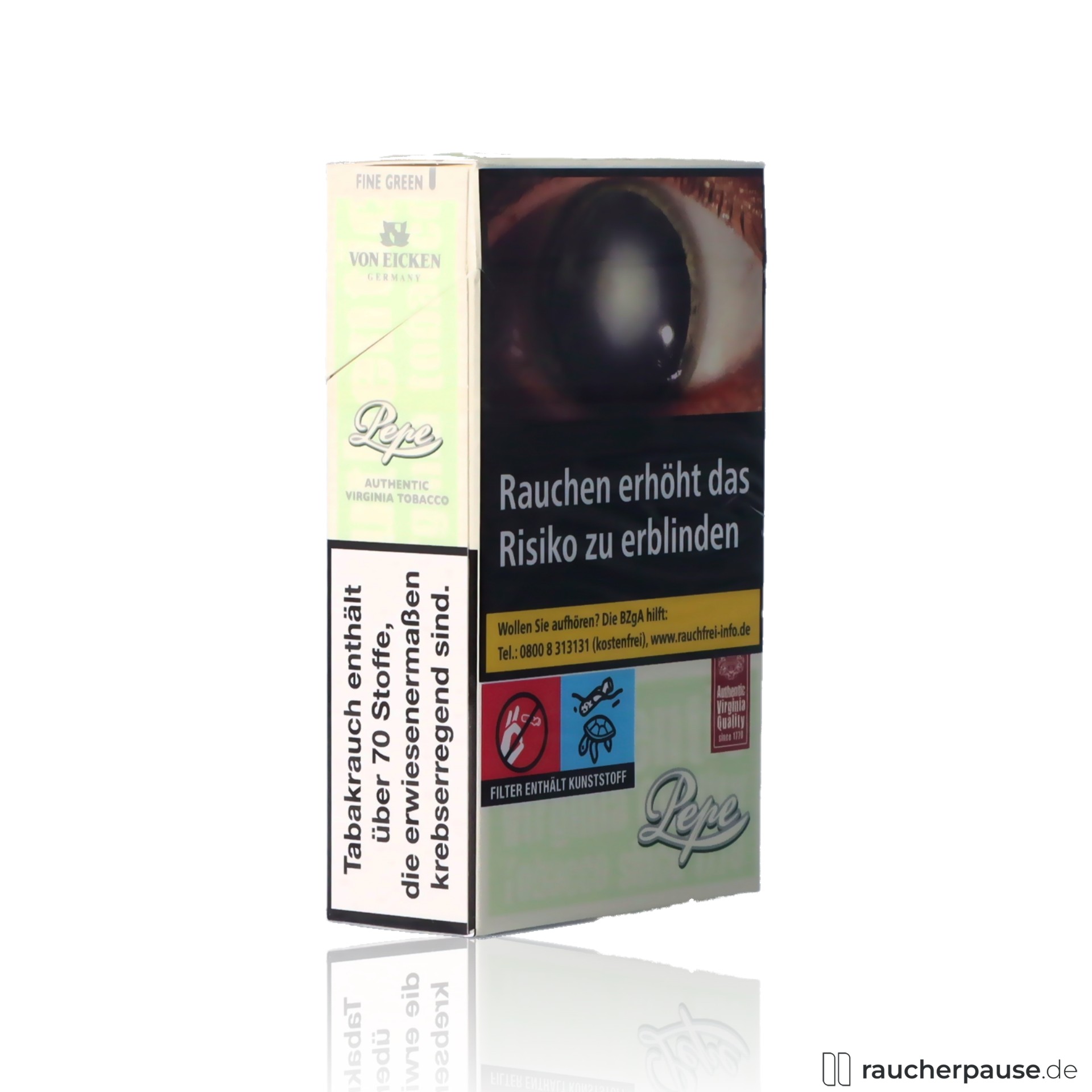 Pepe Fine Green Zigaretten | 20 Stk. pro Packung | Zusatzstofffrei Virginia Aroma