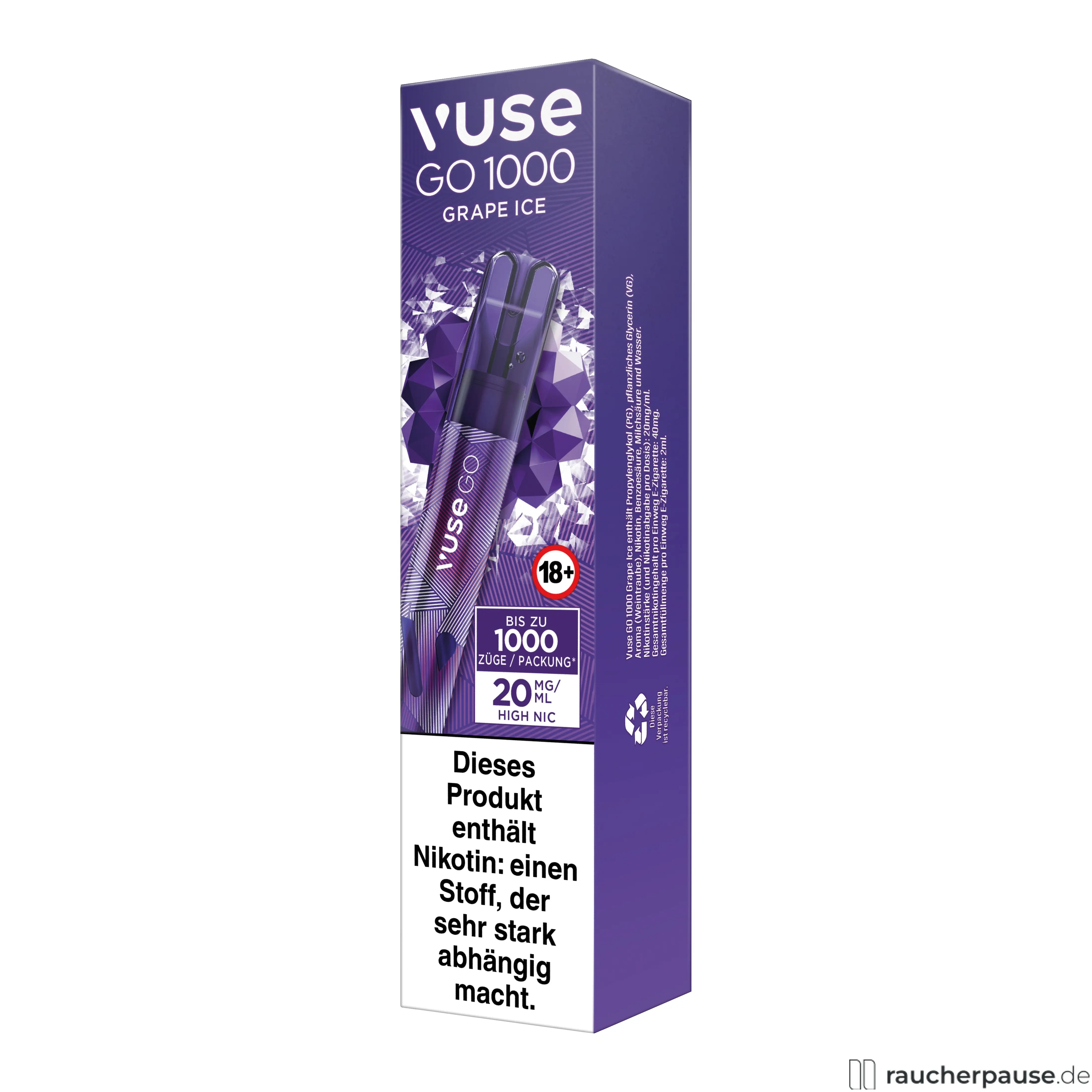 Mit der Vuse GO 1000 Grape Ice erleben Sie einen intensiven Geschmack dunkler Trauben, kombiniert mit einer eiskalten Frische. Perfekt für Liebhaber fruchtig-kühler Noten mit Nikotin.