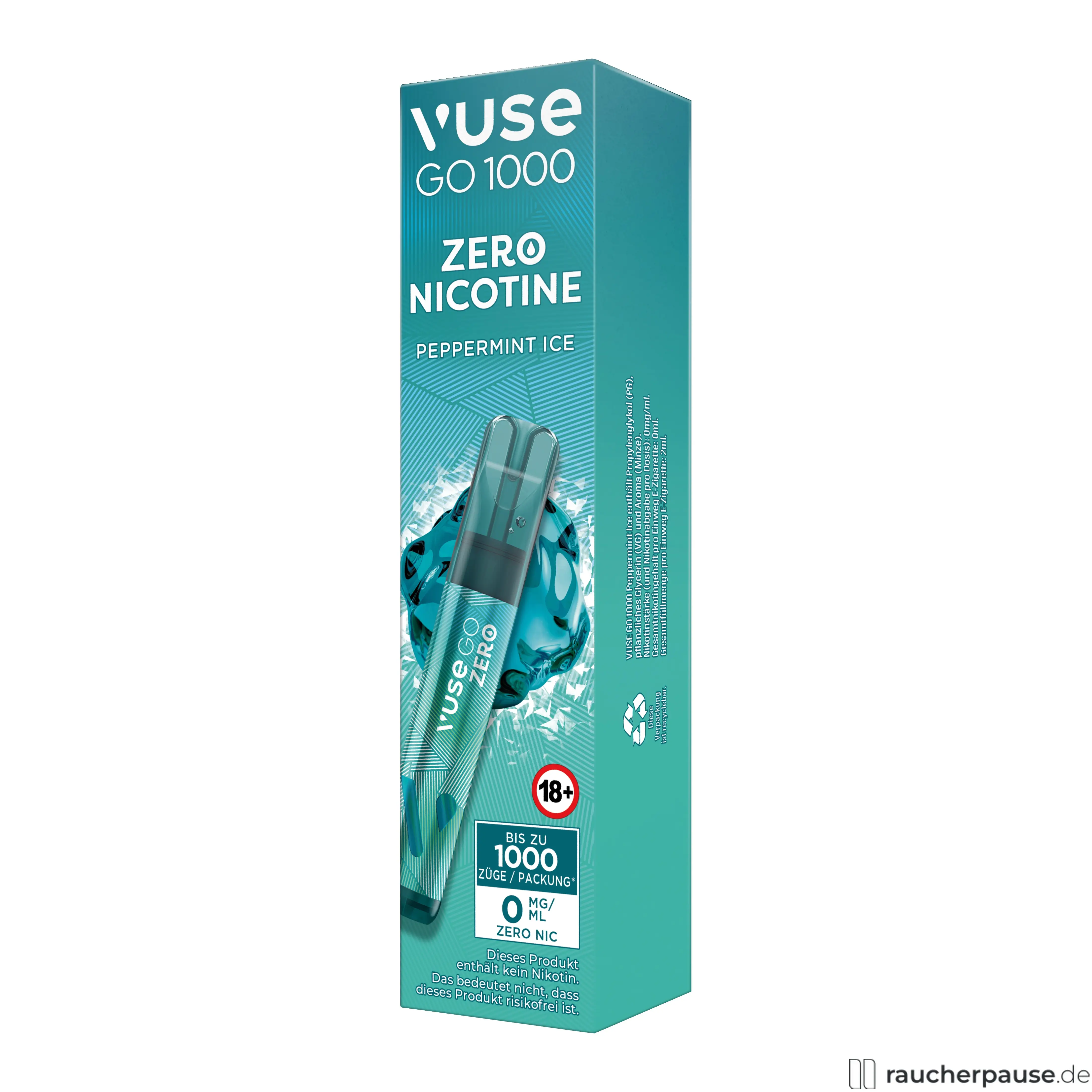 Erleben Sie pure Frische ganz ohne Nikotin – mit der Vuse GO 1000 Peppermint Ice. Ein intensives Menthol-Erlebnis mit kühler Minznote für klare Momente.