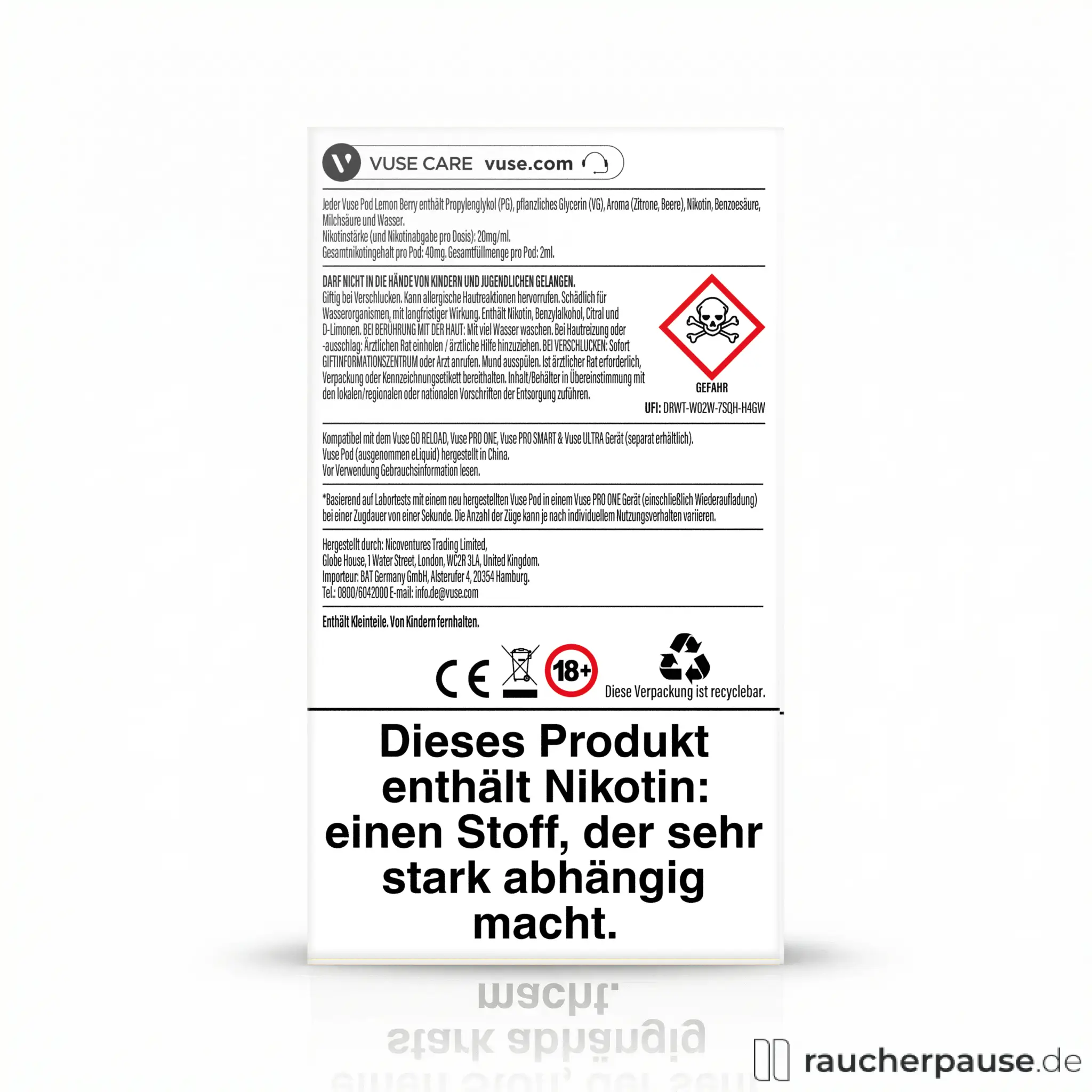 Hersteller: Nicoventures Trading Limited, Globe House, 1 Water Street, London, WC2R 3LA, United Kingdom