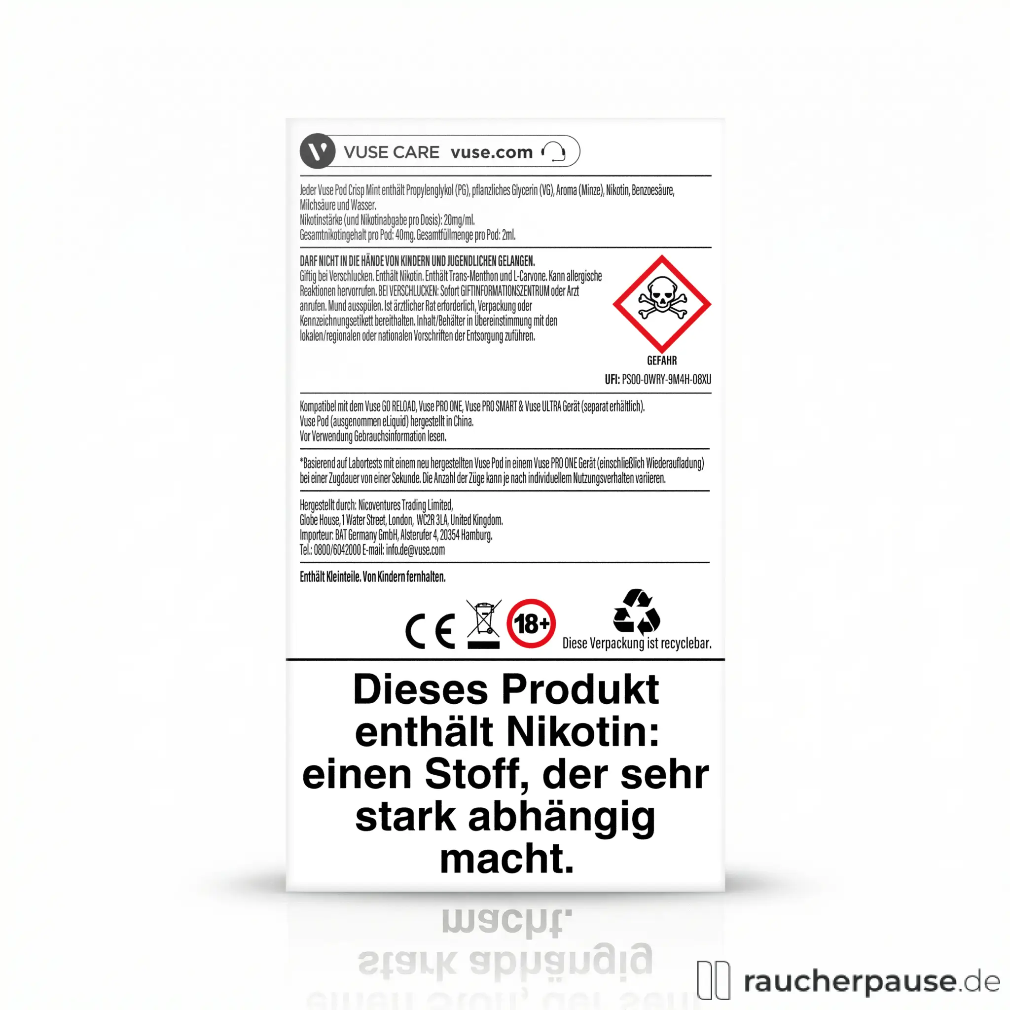Hersteller: Nicoventures Trading Limited, Globe House, 1 Water Street, London, WC2R 3LA, United Kingdom