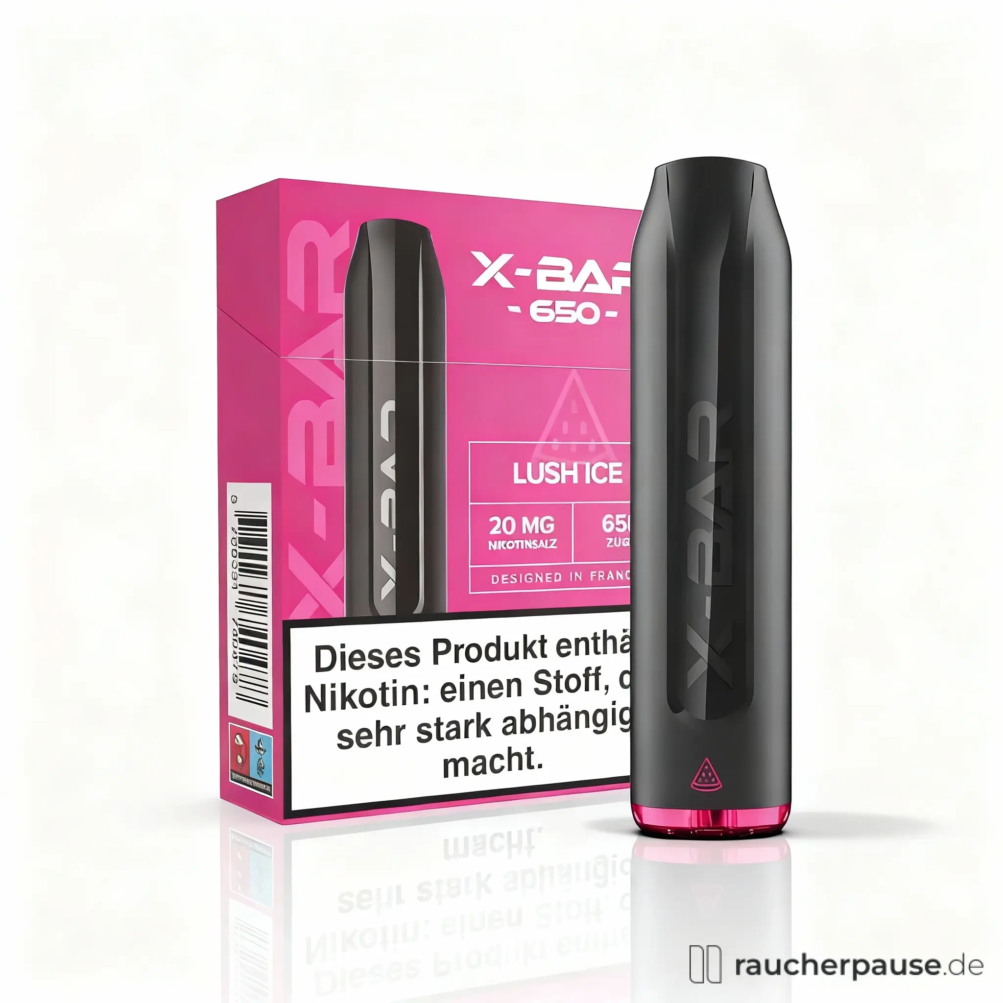 - Die X-Bar Mini ist eine Einweg-E-Shisha und sollte nach Erreichen der 650 Züge umweltgerecht entsorgt werden.